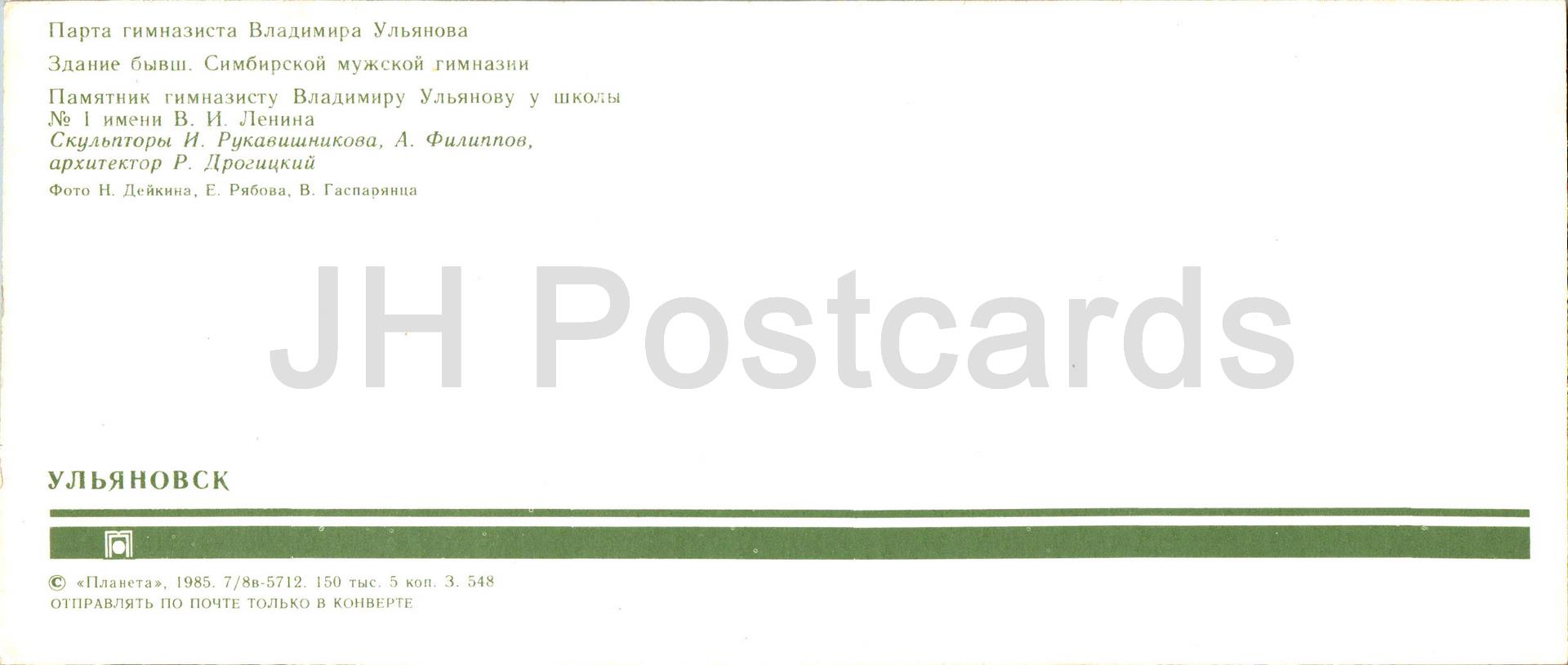 Ulyanovsk - Ulyanov school student desk - gymnasium building - monument to Ulyanov - 1985 - Russia USSR - unused