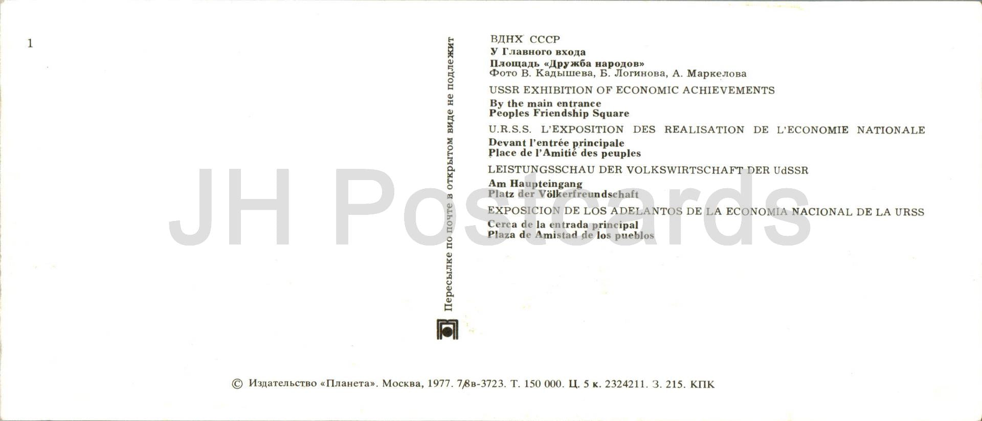 USSR Exhibition of Economic Achievements - By the main entrance - Peoples Friendship Square 1977 - Russia USSR - unused
