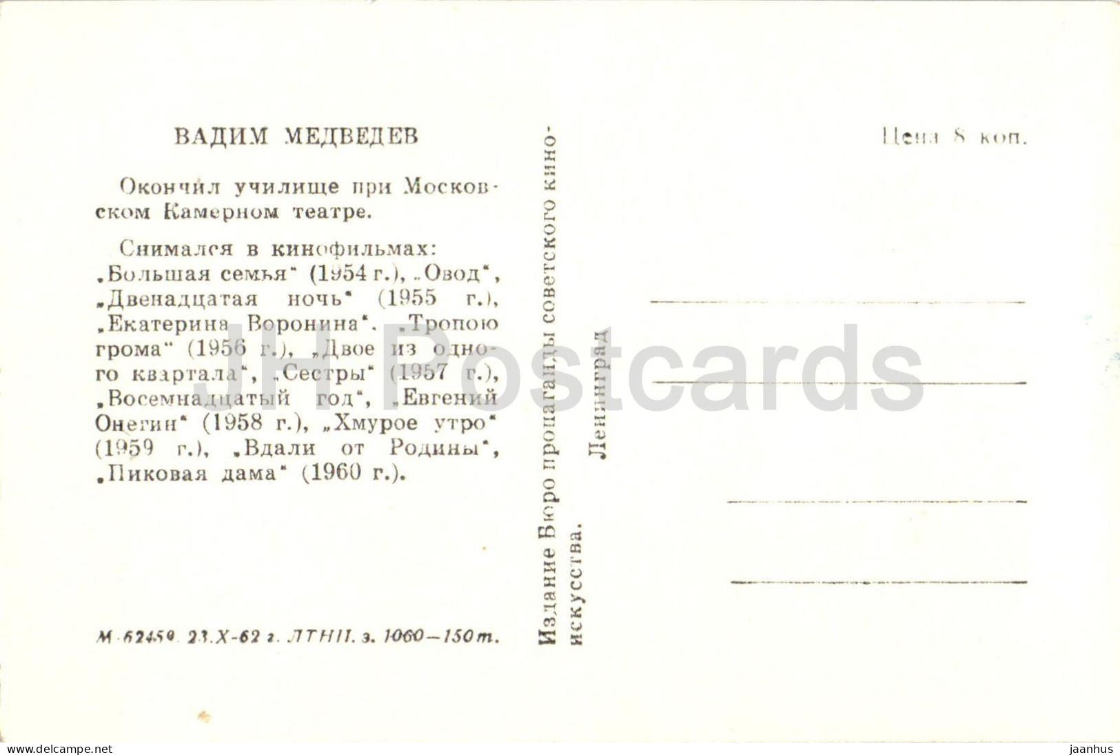 Vadim Medvedev - Soviet - Russian movie actor - 1962 - Russia USSR - unused