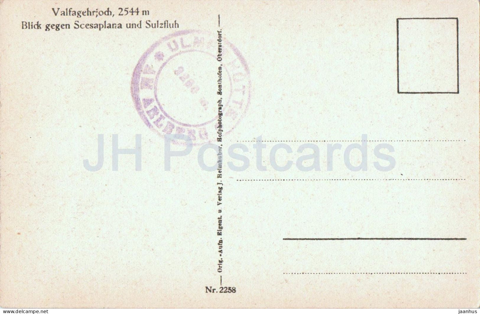Valfagehrjoch 2544 m - Blick gegen Scesaplana und Sulzfluh - 2258 - old postcard - Austria - unused