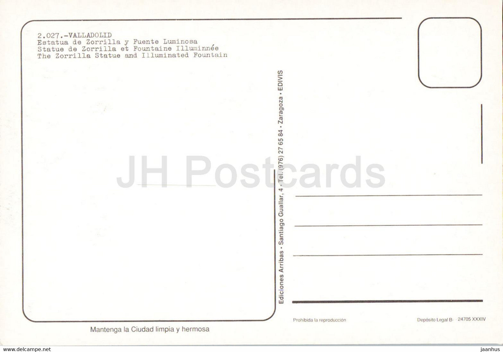 Valladolid - Estatua de Zorrilla y Fuente Luminosa - Zorrilla statue and Illuminated fountain - Spain - unused