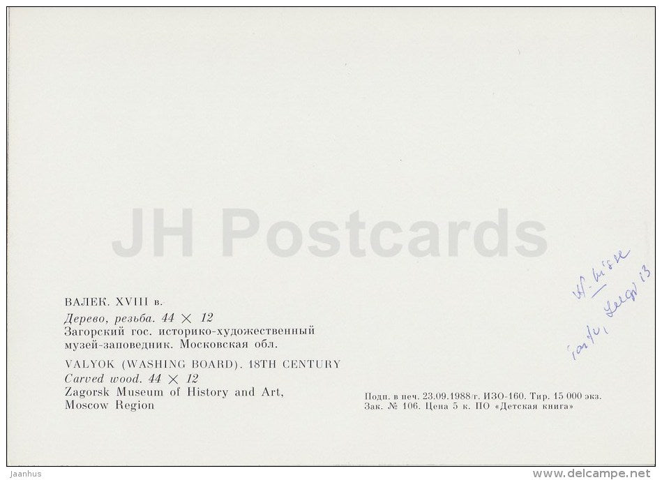 Valyok , Washing Board - carved wood - applied art - Russian Folk Art - 1988 - Russia USSR - unused
