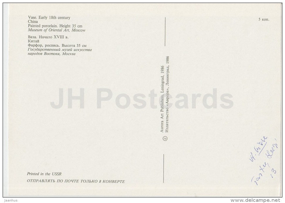 Vase , China - Oriental Art - 1986 - Russia USSR - unused