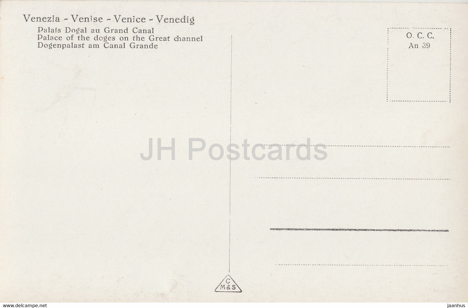 Venezia - Vendig - Venice - Palace of the Doges on the Great Channel - 645 - old postcard - Italy - unused