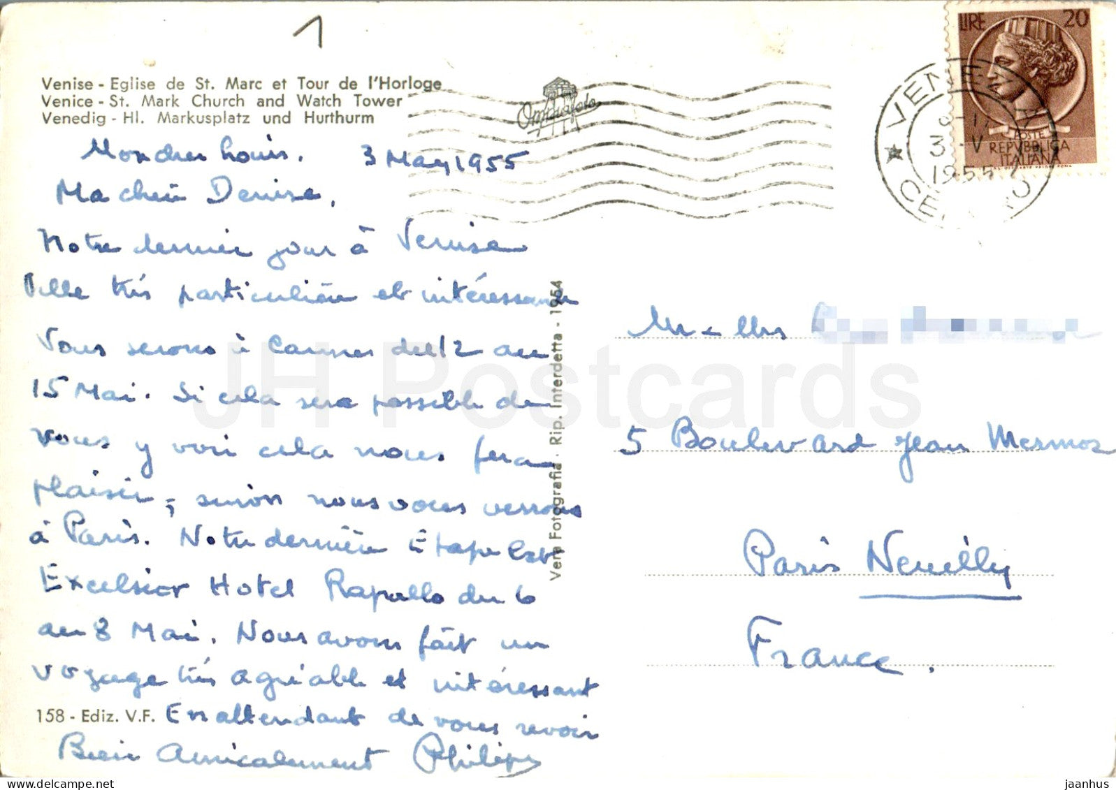 Venezia - Venice - Chiesa di S Marco e Torre dell'Orologio - St Mark Church - old postcard - 158 - 1955 - Italy - used