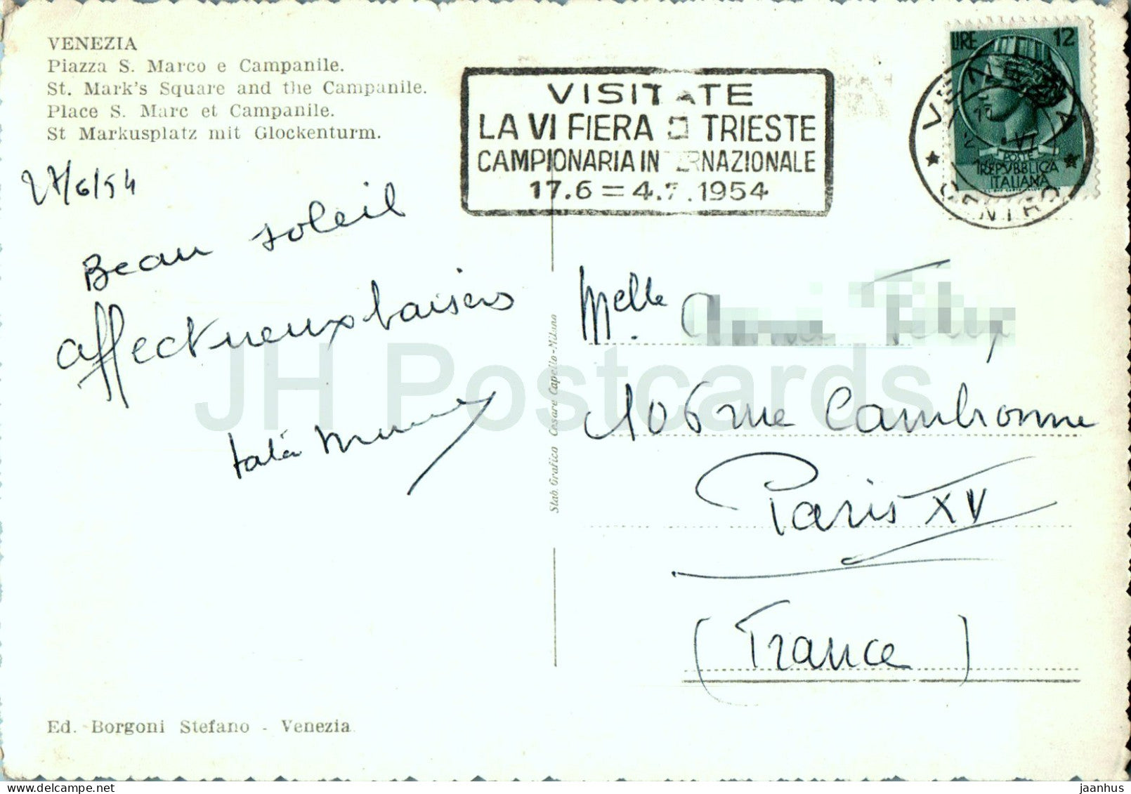 Venezia - Venice - Piazza S Marco e Campanile - St Mark's Square and the Campanile - old postcard - 1954 - Italy - used
