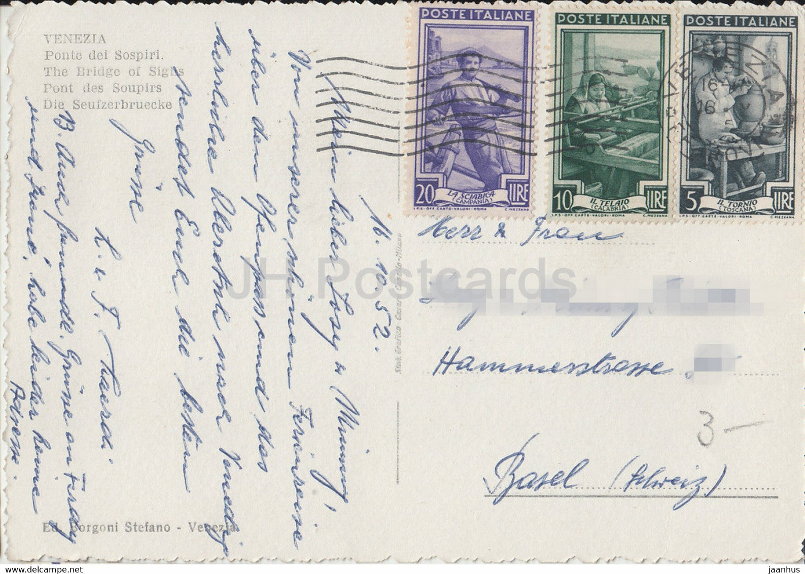 Venezia - Venice - Ponte dei Sospiri - bridge - gondola - old postcard - 1952 - Italy - used