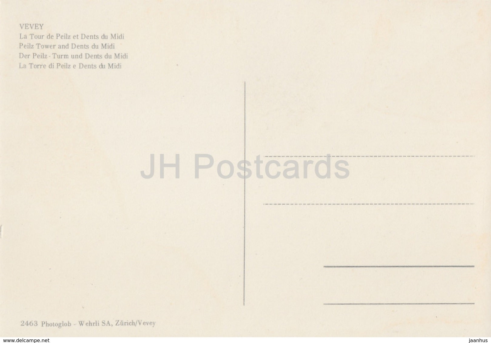 Vevey - La Tour de Peilz et Dents du Midi - Peilz Tower and Dents du Midi - panorama - 2463 - Switzerland - unused