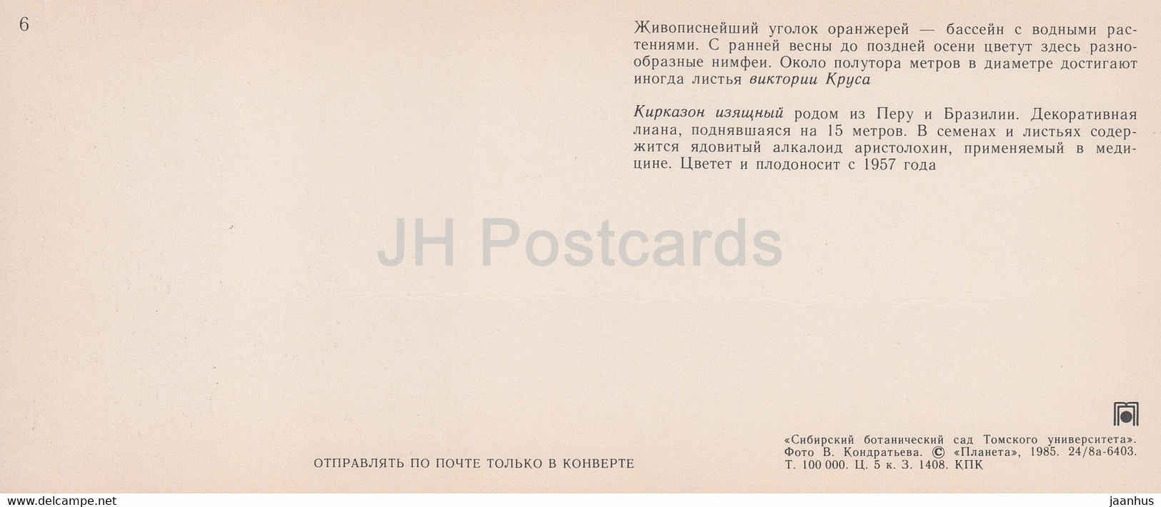 Victoria cruziana - water lily - calico flower - Siberian Botanical Garden - 1985 - Russia USSR - unused