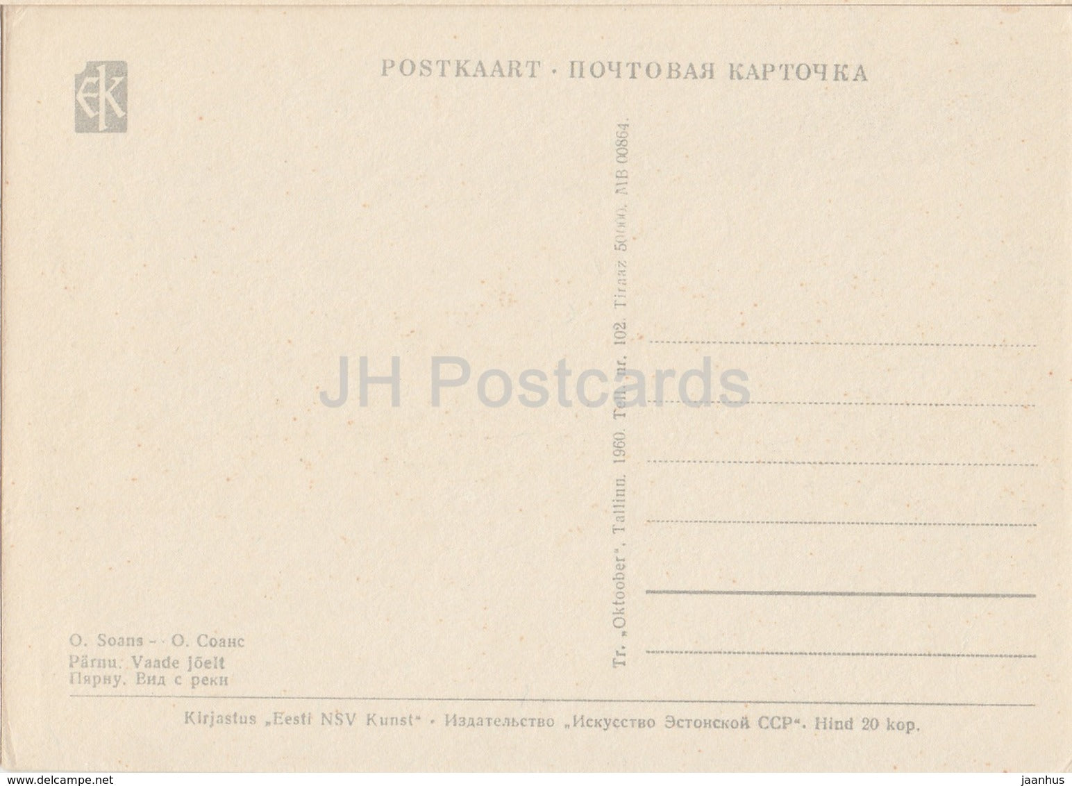 view from the river - bridge - Parnu - Illustration by O. Soans - 1960 - Estonia USSR - unused