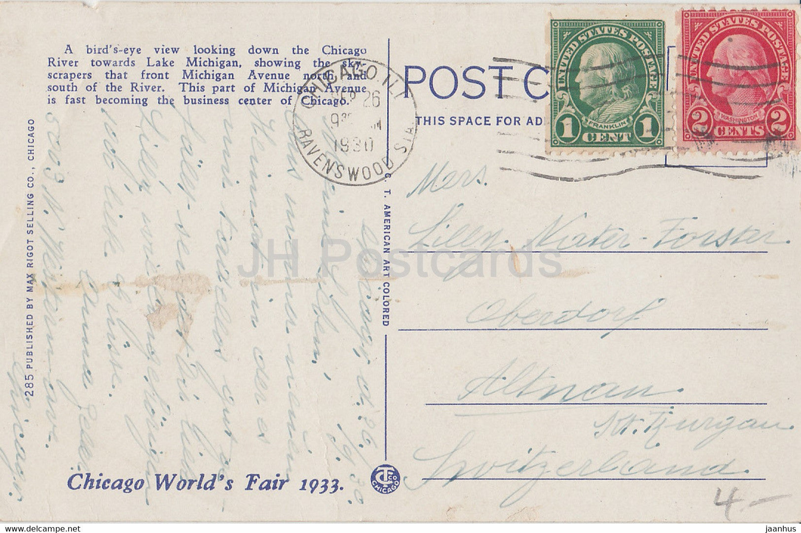 View of Chicago River - Wacker Drive and Michigan Boulevard Bridge - old postcard - 1930 - United States USA - used