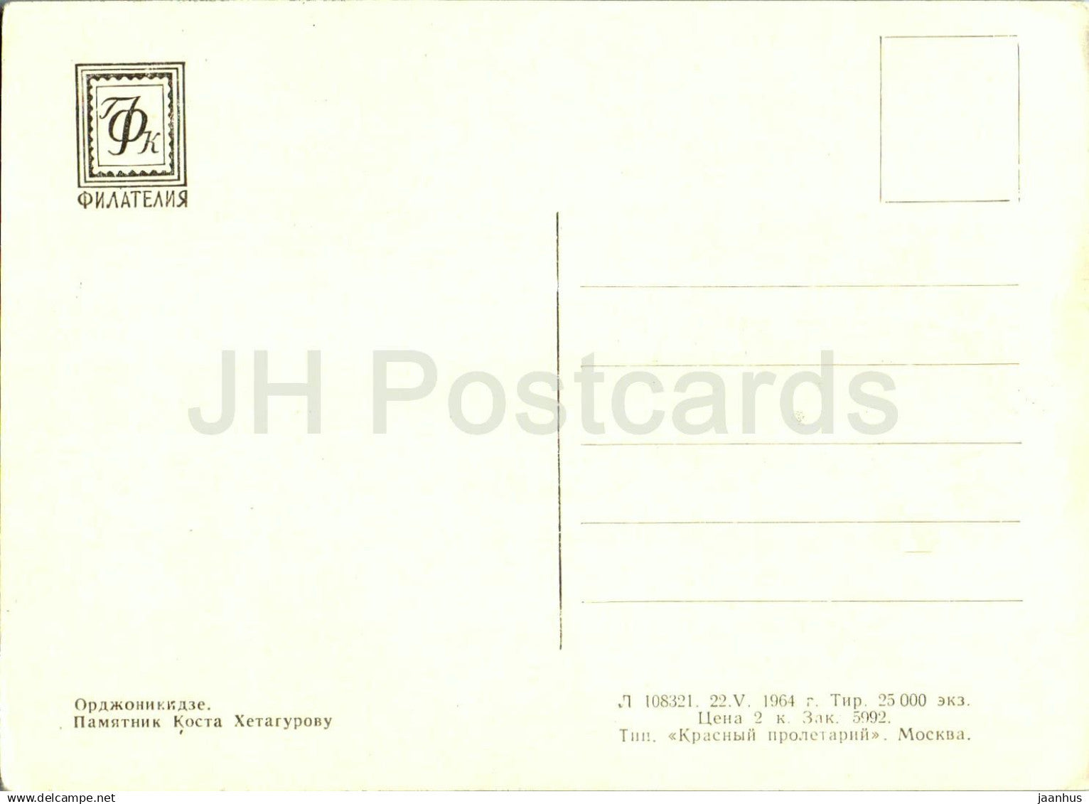Vladikavkaz - Ordzhonikidze - monument to Ossetic poet Kosta Hetagurov - 1964 - Russia USSR - unused