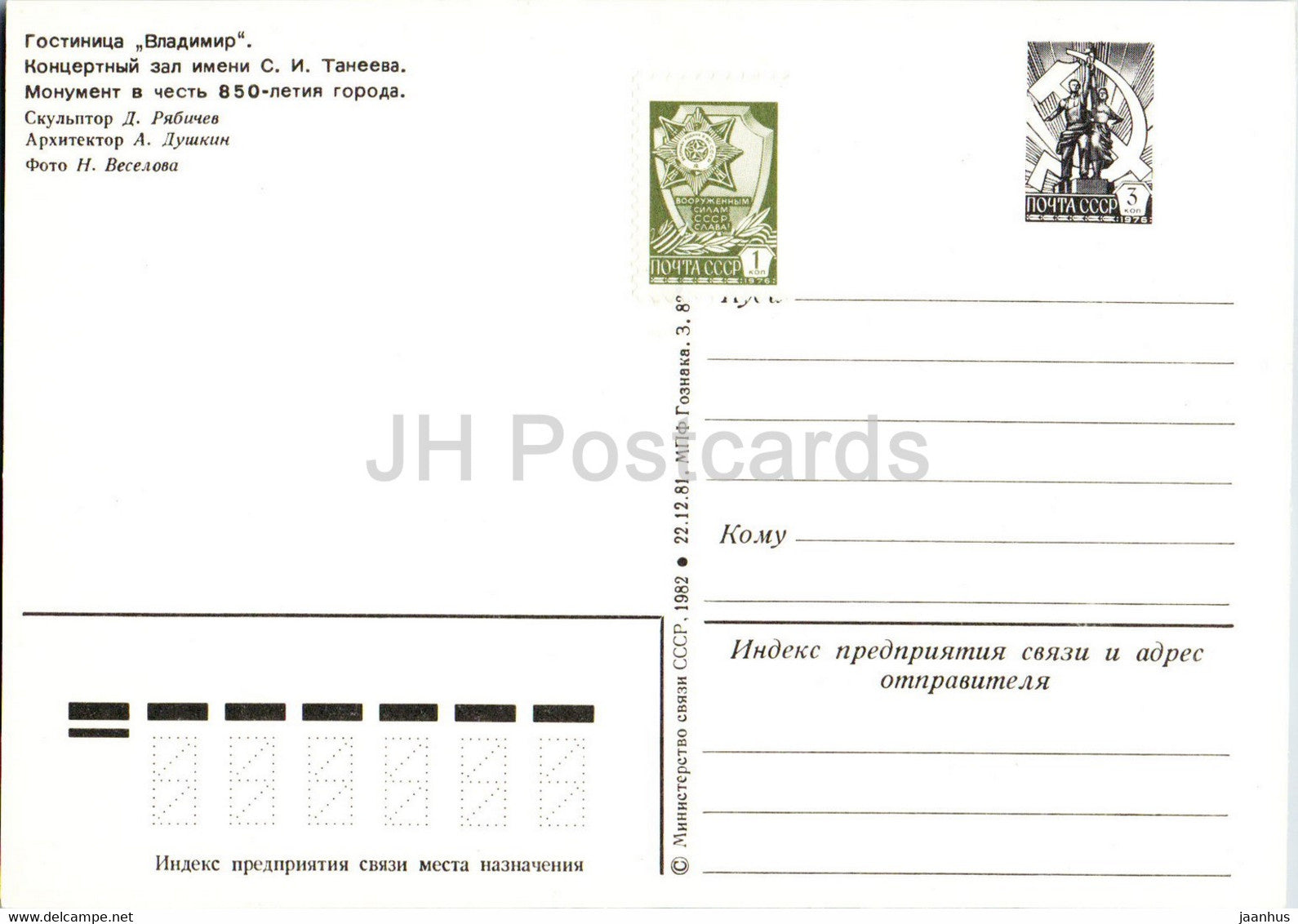 Vladimir - hotel Vladimir - Taneyev Concert Hall - 850 anniversary - postal stationery - 1982 - Russia USSR - unused