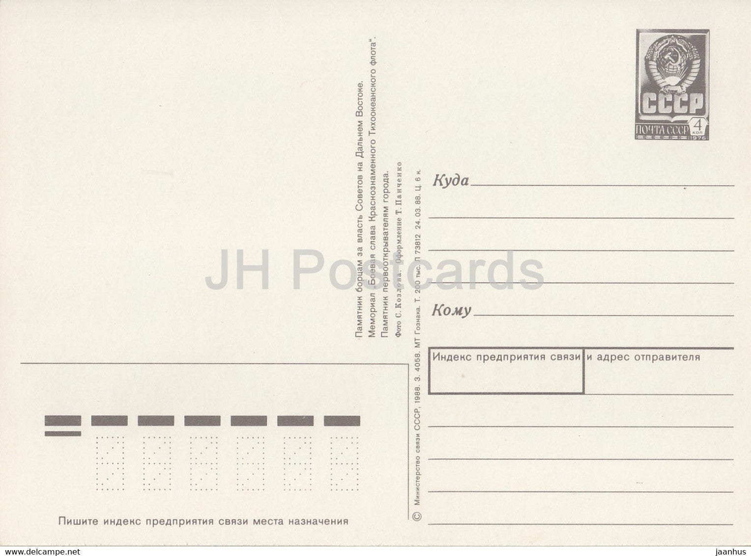Vladivostok - monument to the fighters for Soviet power - 1 - postal stationery - 1988 - Russia USSR - unused