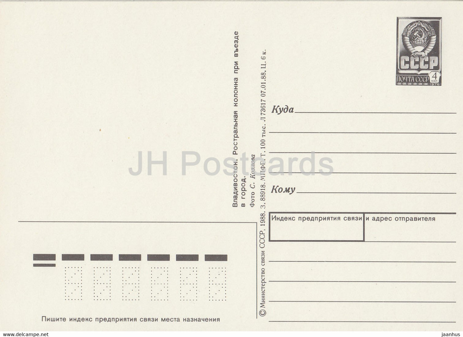 Vladivostok - Rostral column at the entrance to the City - postal stationery - 1988 - Russia USSR - unused