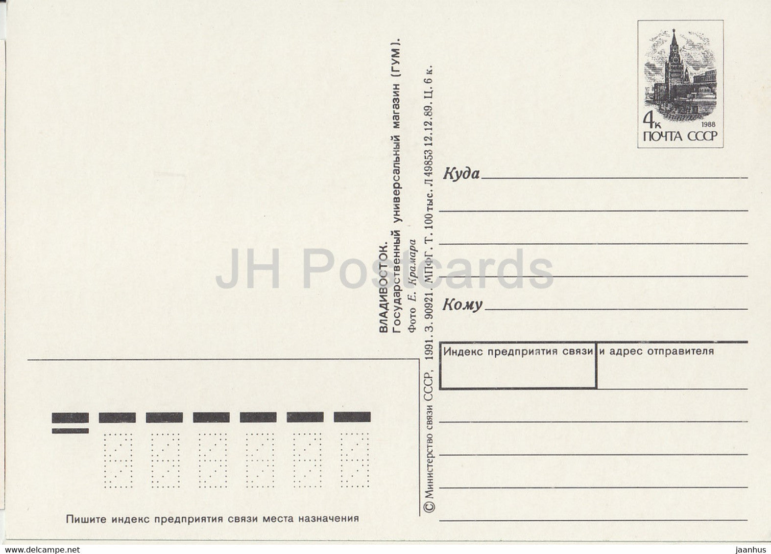 Vladivostok - state department store - tram - car Zhiguli - postal stationery - 1991 - Russia USSR - unused