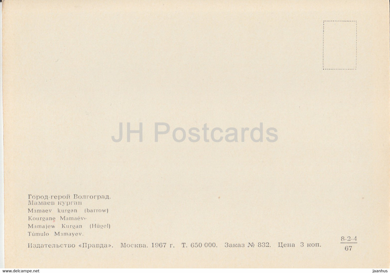 Volgograd - Mamaev Kurgan barrow - monument - 1967 - Russia USSR - unused