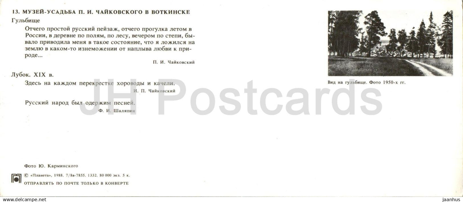 Votkinsk - Tchaikovsky museum - place for walking - Lubok - illustration - 1988 - Russia USSR - unused