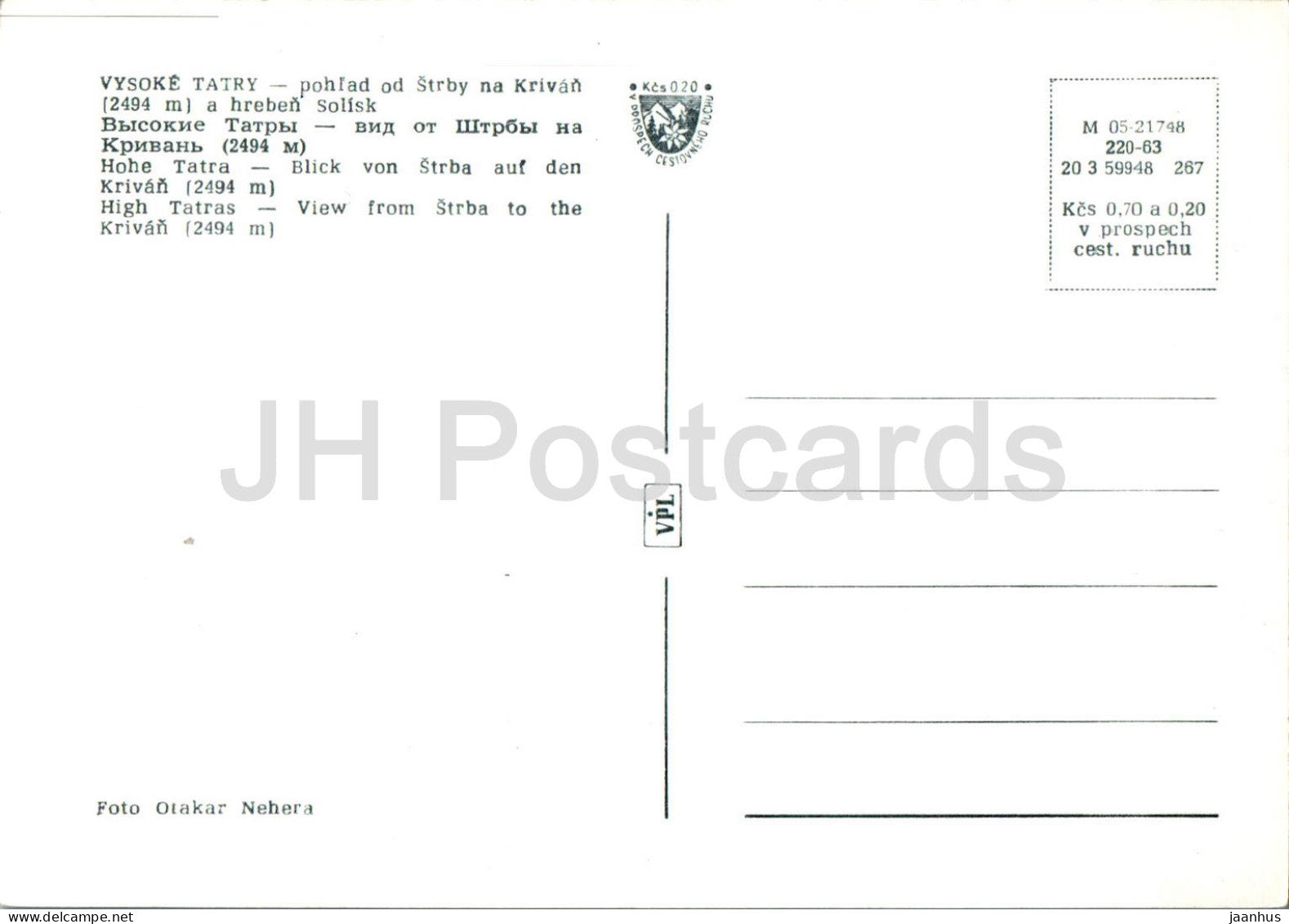 Vysoke Tatry - pohlad od Strby na Krivan a hreben Solisk - Strba - Krivan - Slovakia - Czechoslovakia - unused