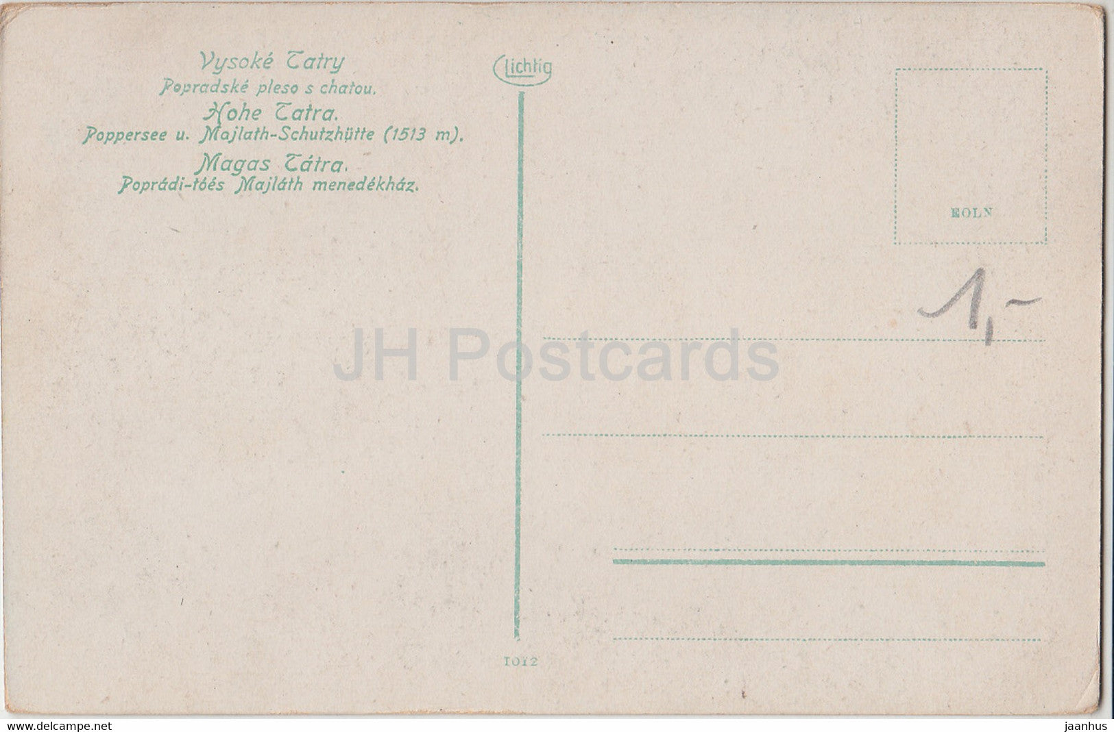 Vysoke Tatry - Popradske Pleso s chatou - Hohe Tatra - Poppersee - old postcard - Slovakia - unused