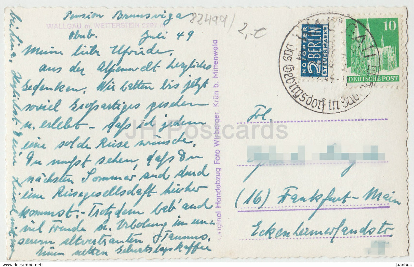 Wallgau m Wetterstein 2297 m - old postcard - 1949 - Germany - used