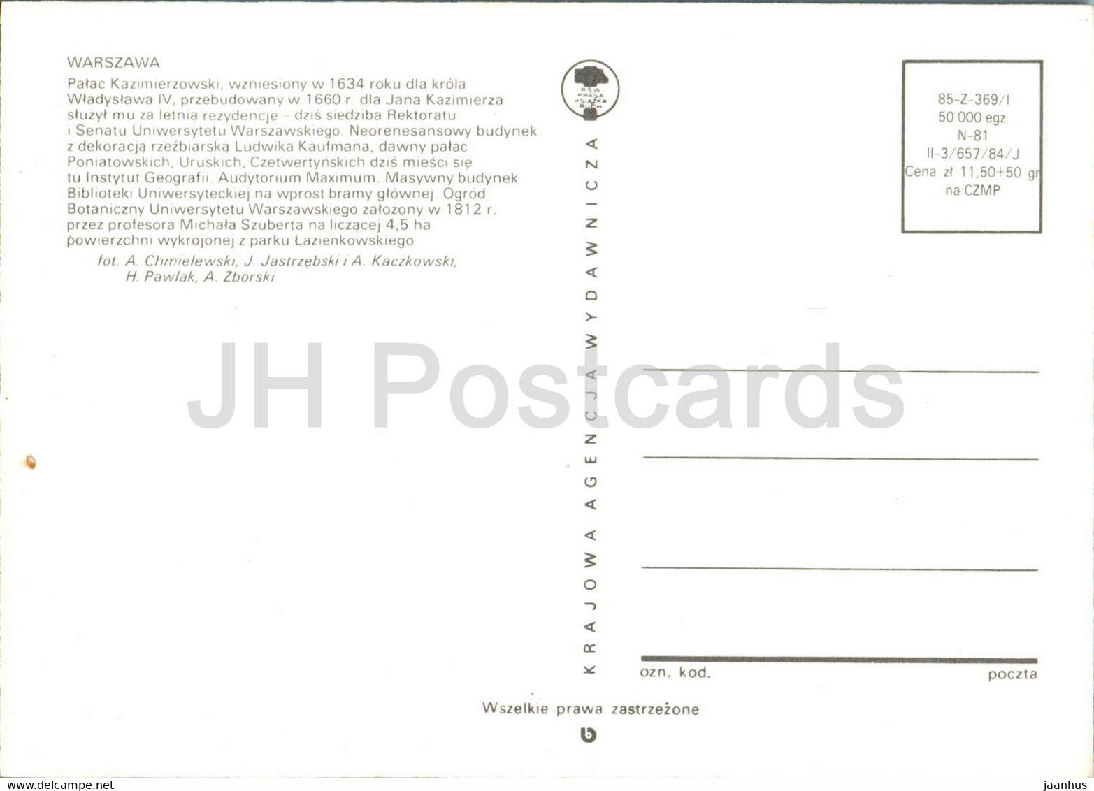 Warsaw - Warszawa - Palac Kazimierzowski - car - multiview - Poland - unused