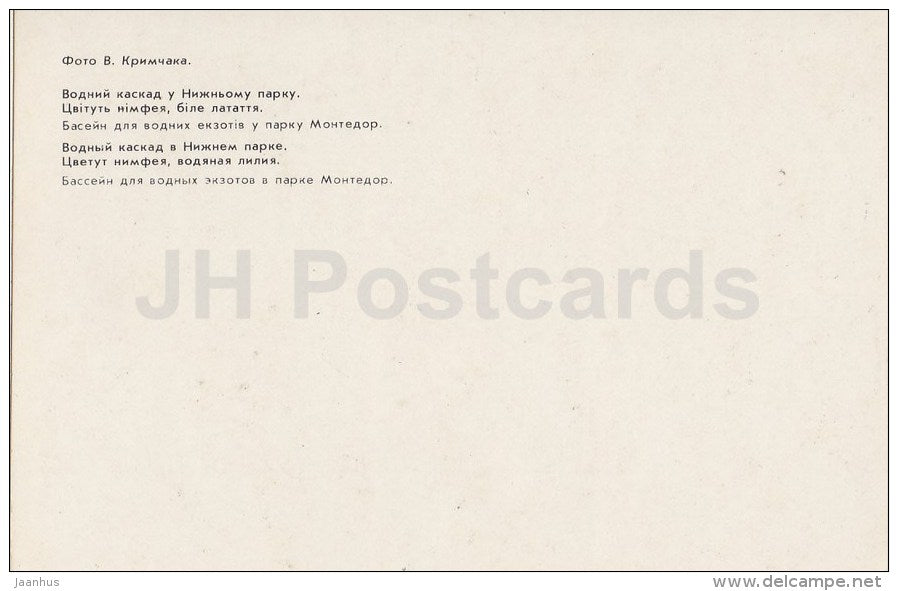 Water Cascade in the Lower Park - Nymphea - Nikitsky Botanical Garden - Crimea - 1989 - Ukraine USSR - unused