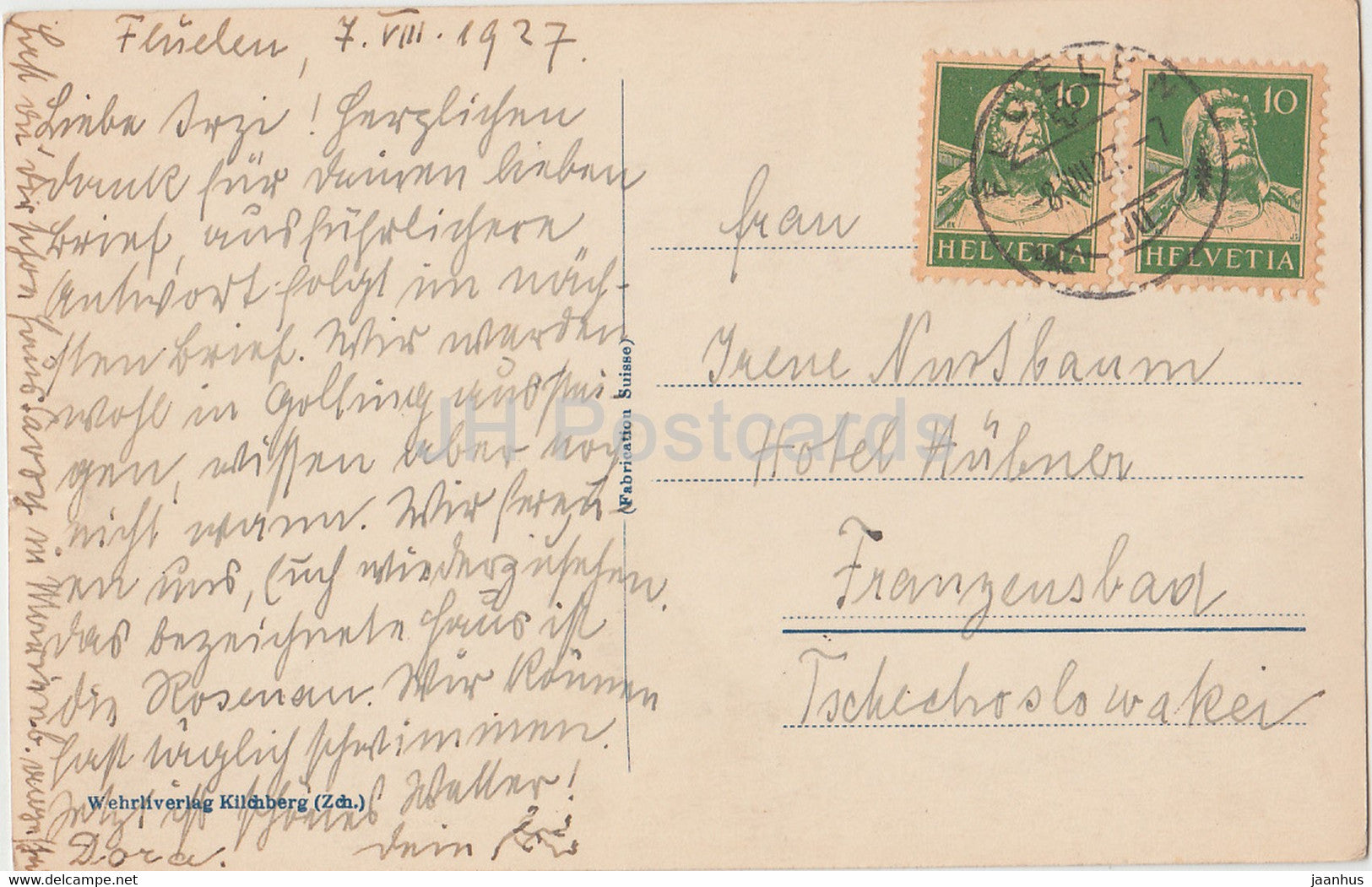 Wengen mit Jungfrau und Breithorn - 5032 - old postcard - 1927 - Switzerland - used