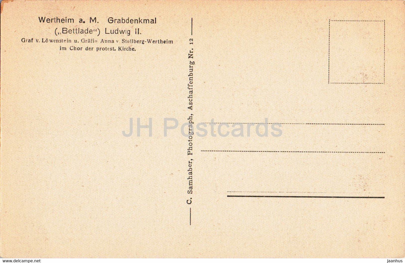 Wertheim a M - Grabdenkmal Bettlade Ludwig II - church - old postcard - Germany - unused