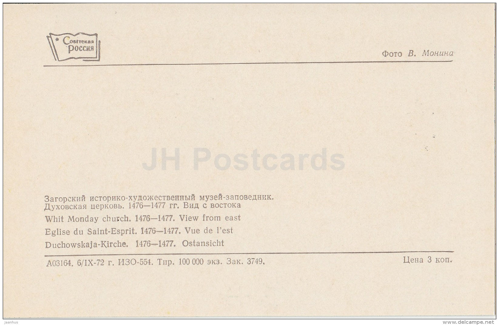 Whit Monday Church - Sergiyev Posad - Zagorsk - 1973 - Russia USSR - unused