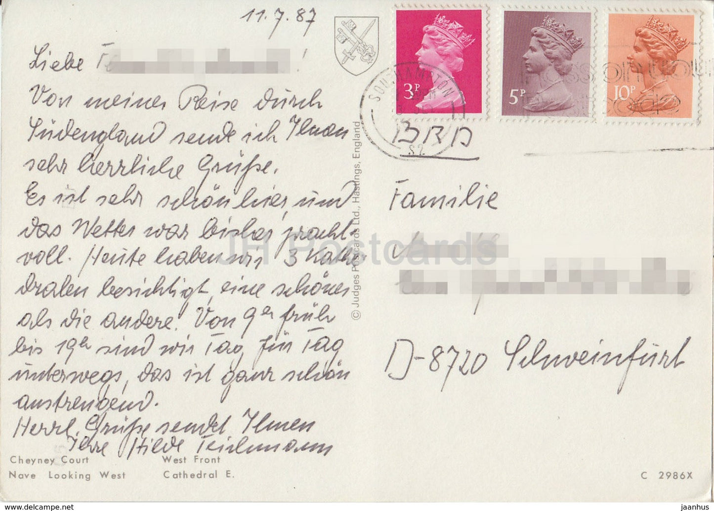 Winchester Cathedral - Cheyney Coyurt - multiview - 1987 - United Kingdom - England - used