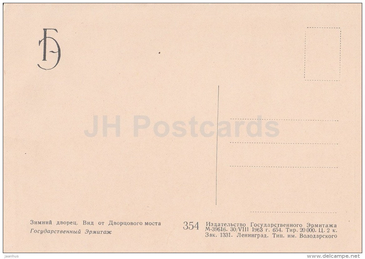 Winter Palace - View from Palace Bridge - Hermitage - St. Petersburg - Leningrad - Russia USSR - 1963 - unused