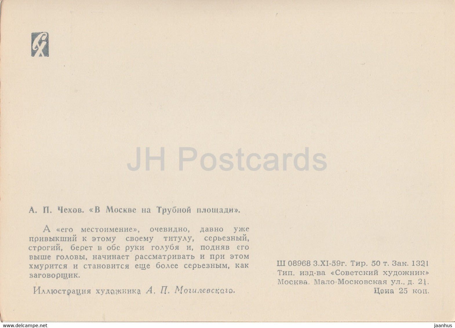 Works by Russian Writer Chekhov - In Moscow at Trubnaya square - illustration - 1959 - Russia USSR - unused