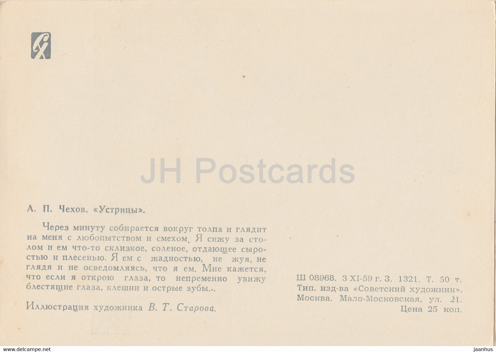 Works by Russian Writer Chekhov - Oysters - illustration - 1959 - Russia USSR - unused