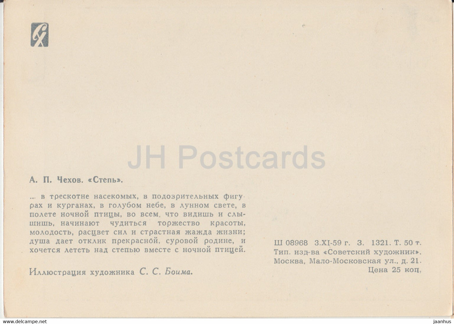 Works by Russian Writer Chekhov - Steppe - horse carriage - illustration - 1959 - Russia USSR - unused
