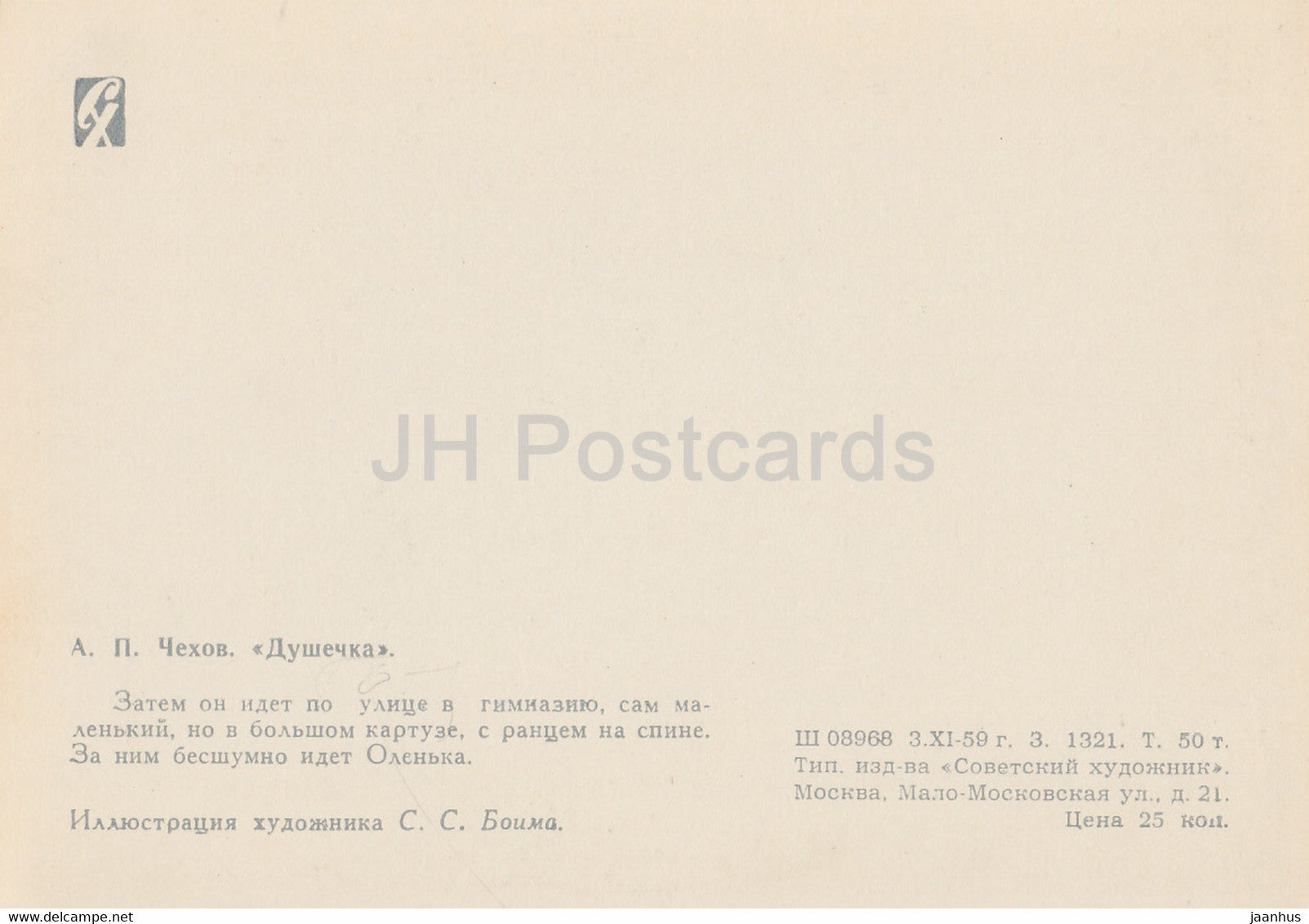 Works by Russian Writer Chekhov - The Darling - illustration - 1959 - Russia USSR - unused