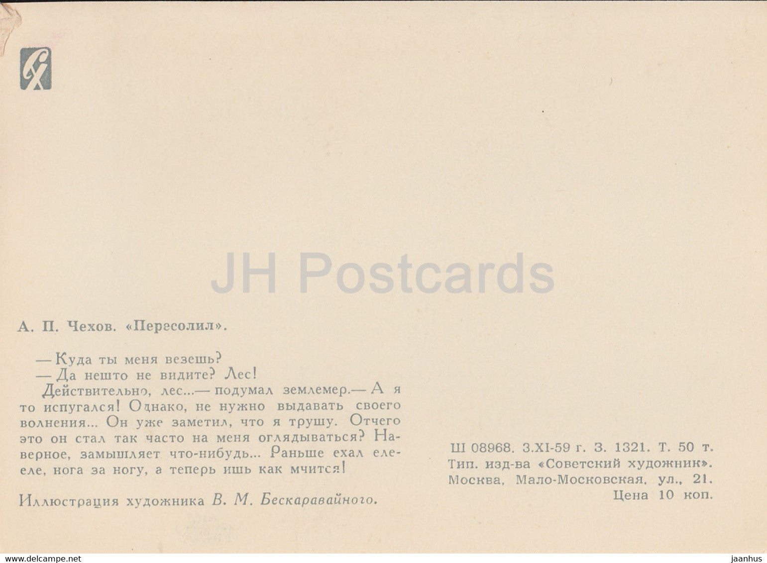Works by Russian Writer Chekhov - Too Much Salt - horse carriage - illustration - 1959 - Russia USSR - unused