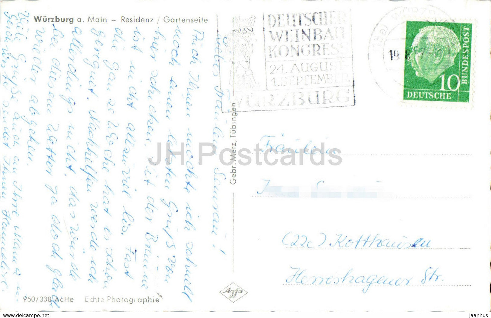 Wurzburg a Main - Residenz - Gartenseite - old postcard - 1957 - Germany - used