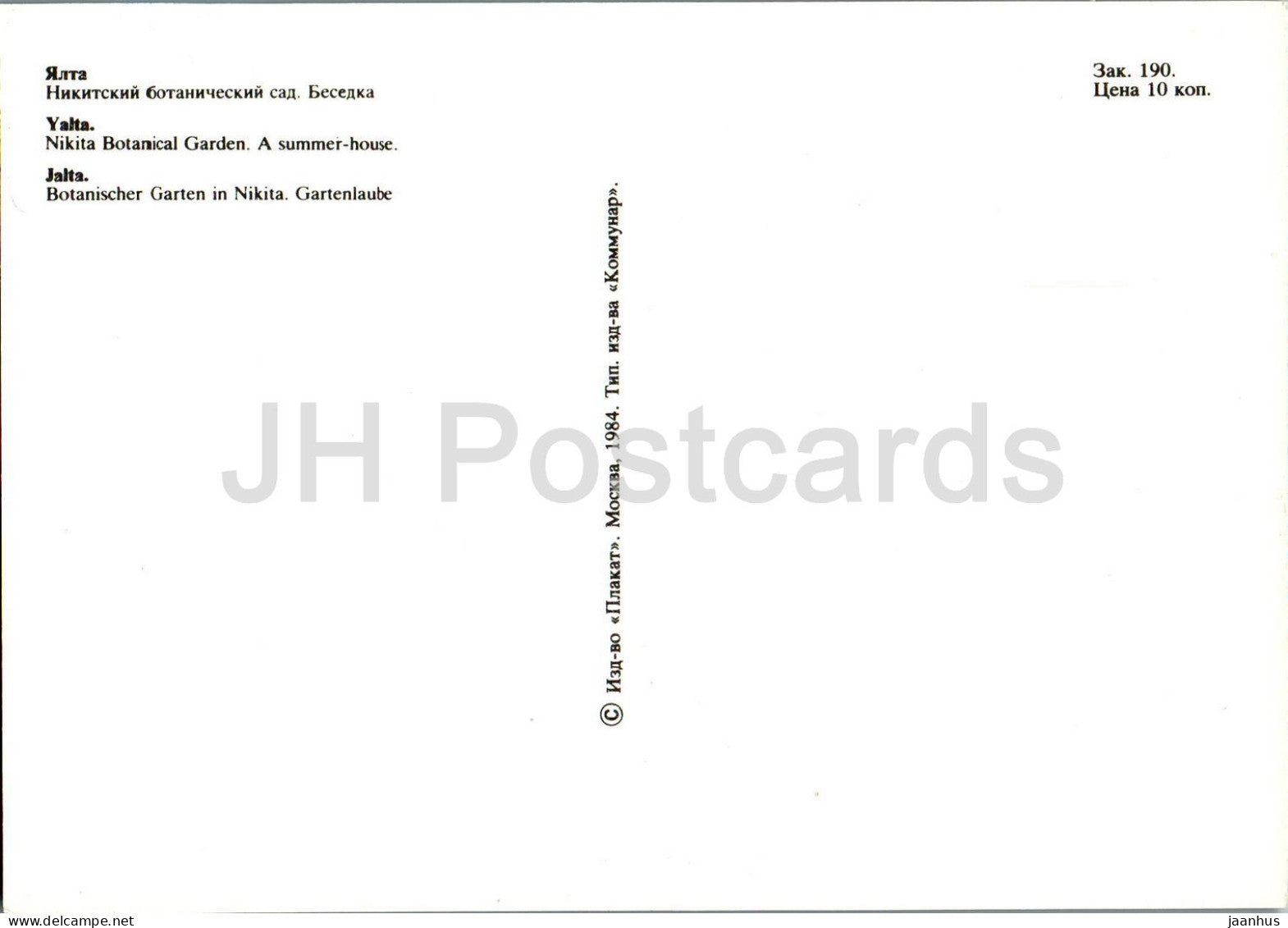 Yalta - Nikitsky Botanical Garden - A Summer House - Crimea - 1984 - Ukraine USSR - unused