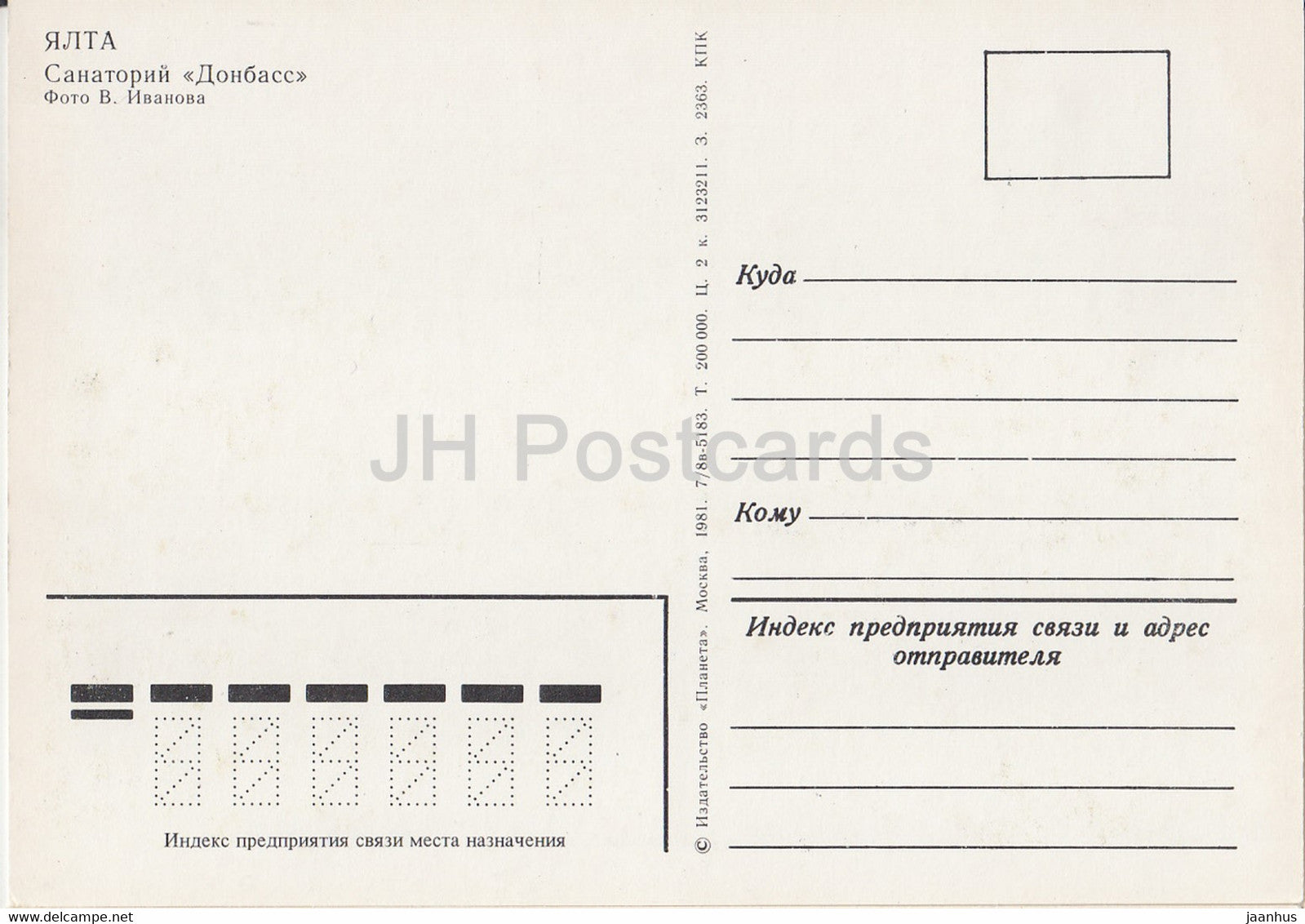 Yalta - sanatorium Donbass - Crimea - 1981 - Ukraine USSR - unused
