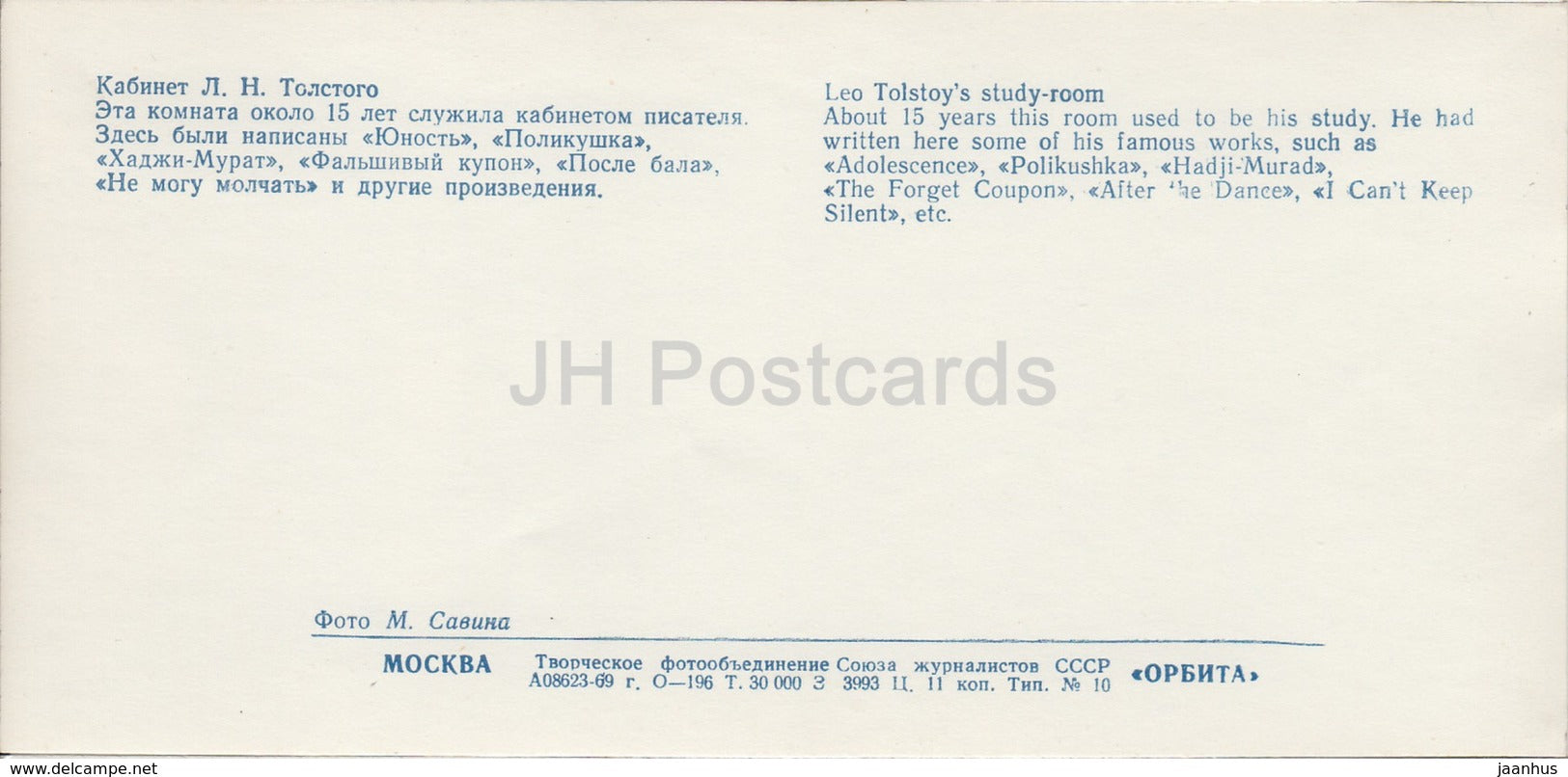 Yasnaya Polyana - Study Room - Leo Tolstoy Museum - 1968 - Russia USSR - unused
