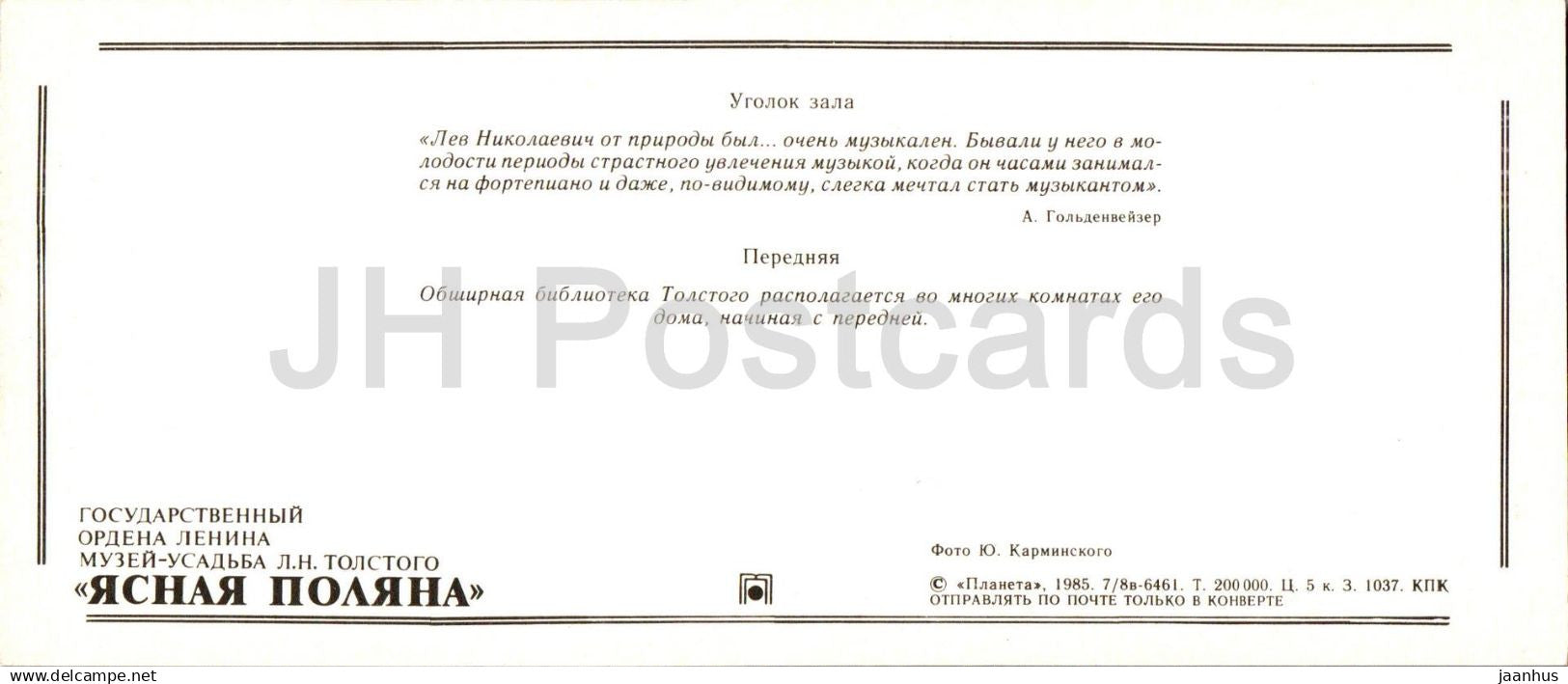 Yasnaya Polyana - Tolstoy museum - corner of the hall - front room - piano - 1985 - Russia USSR - unused