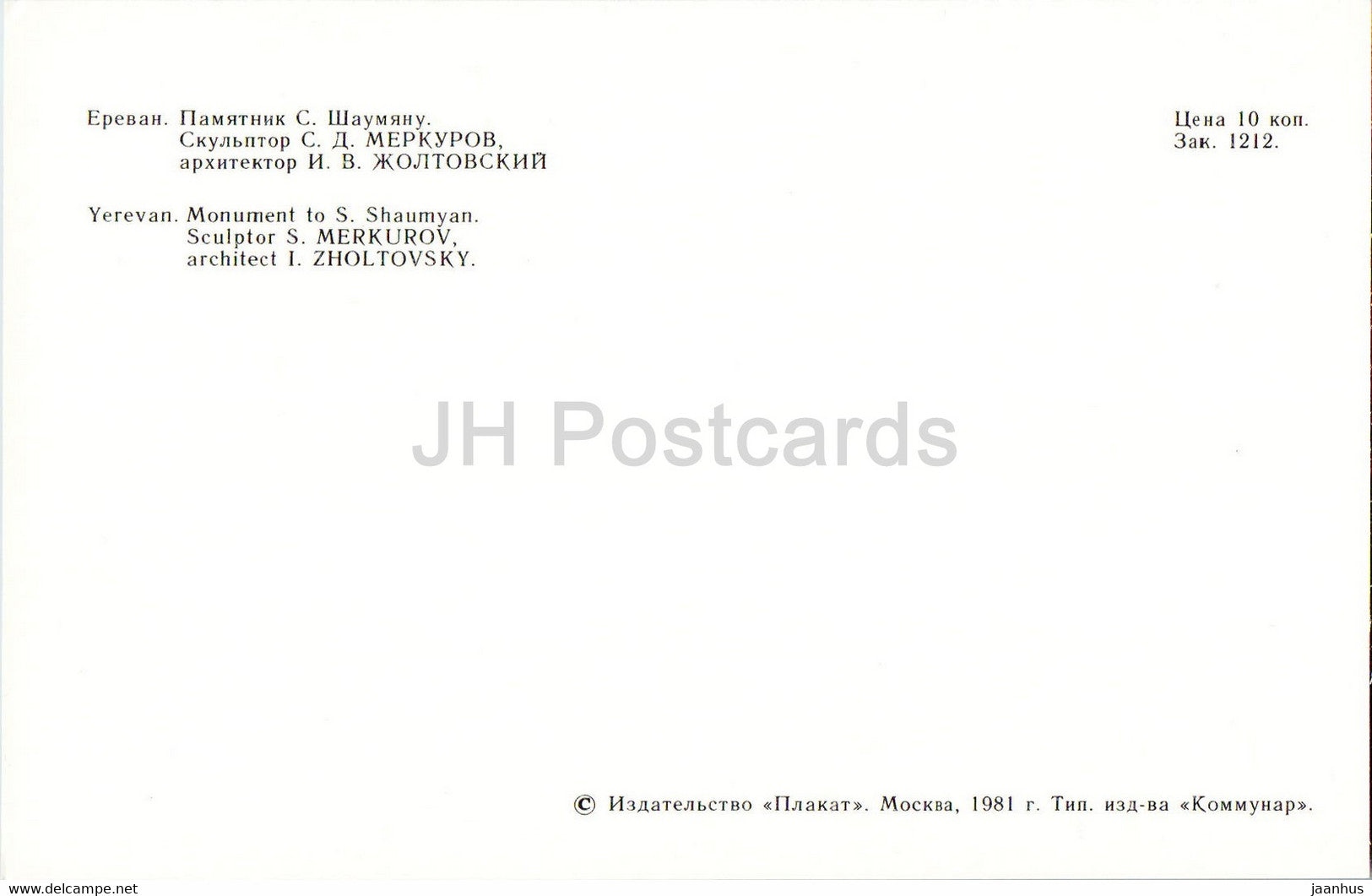 Yerevan - monument to S. Shaumyan - 1981 - Armenia USSR - unused