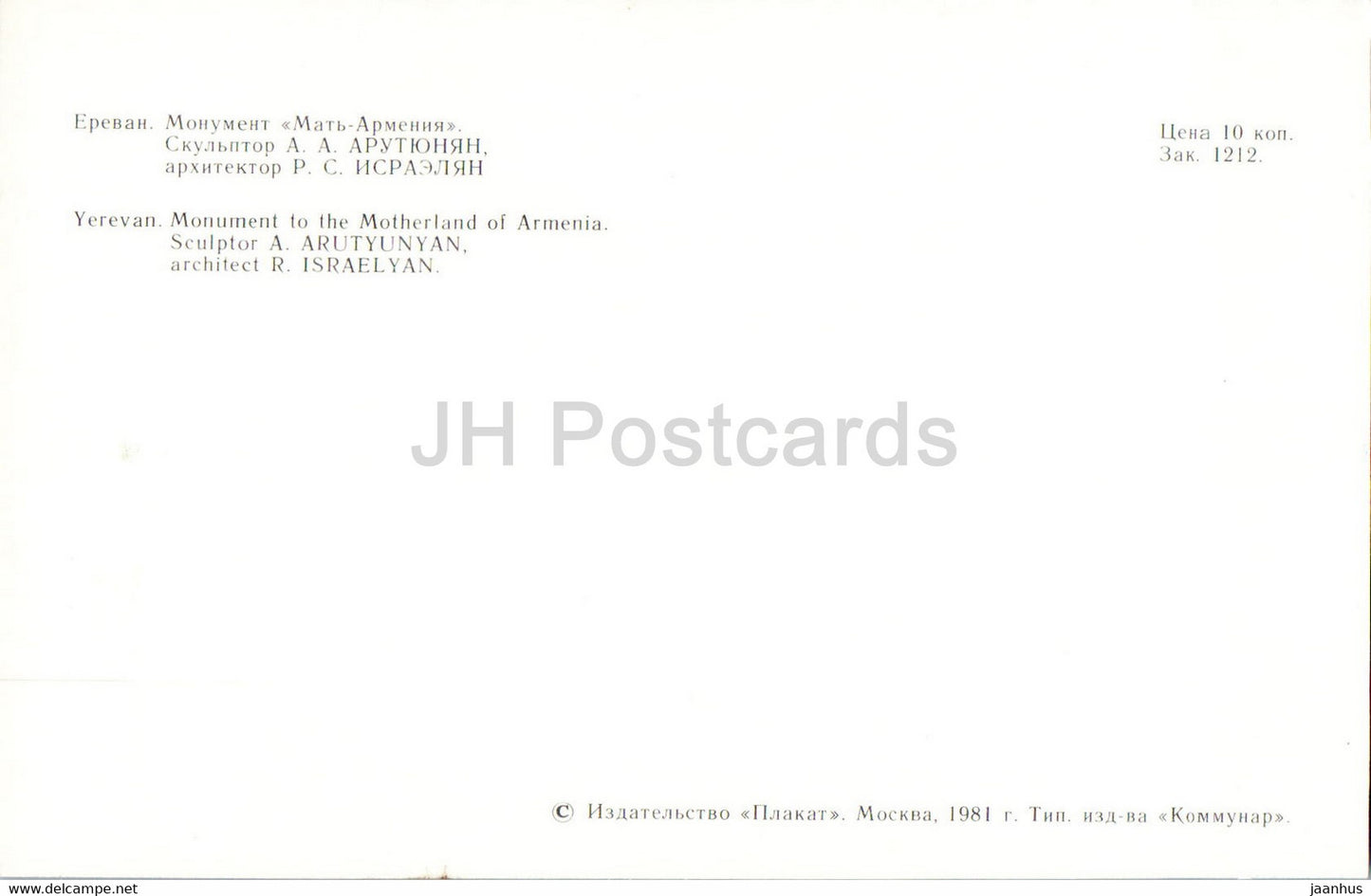 Yerevan - monument to the Motherland of Armenia - 1981 - Armenia USSR - unused