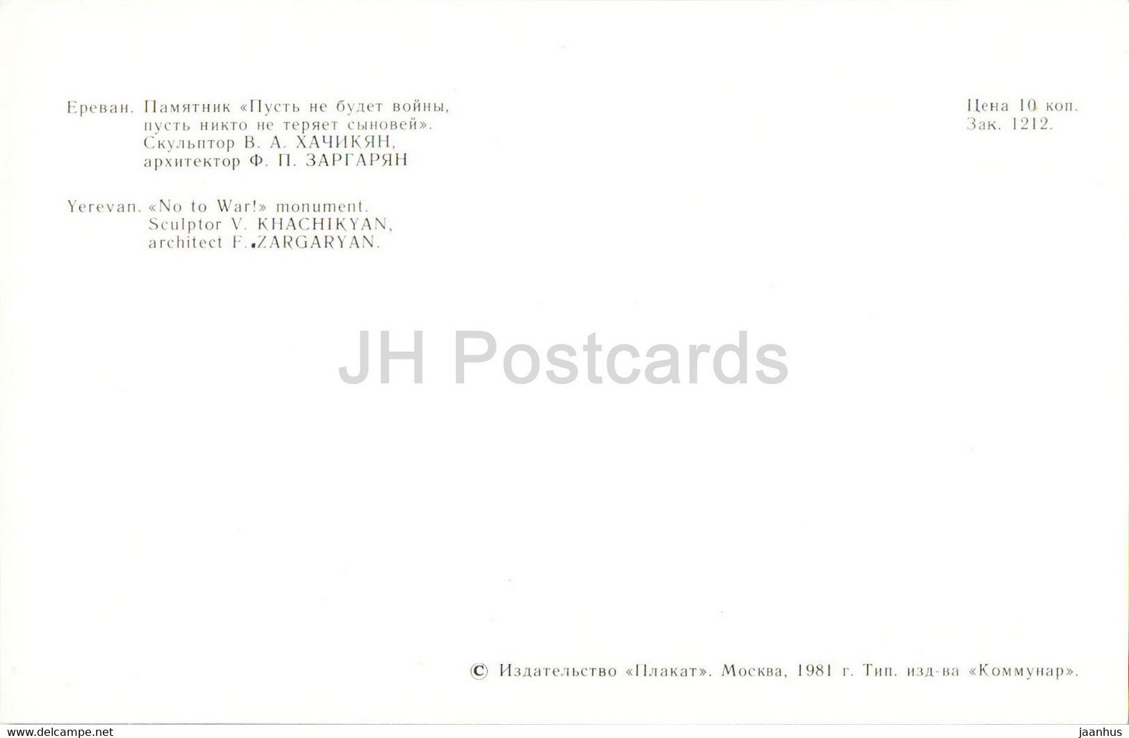 Yerevan - No To War monument - 1981 - Armenia USSR - unused