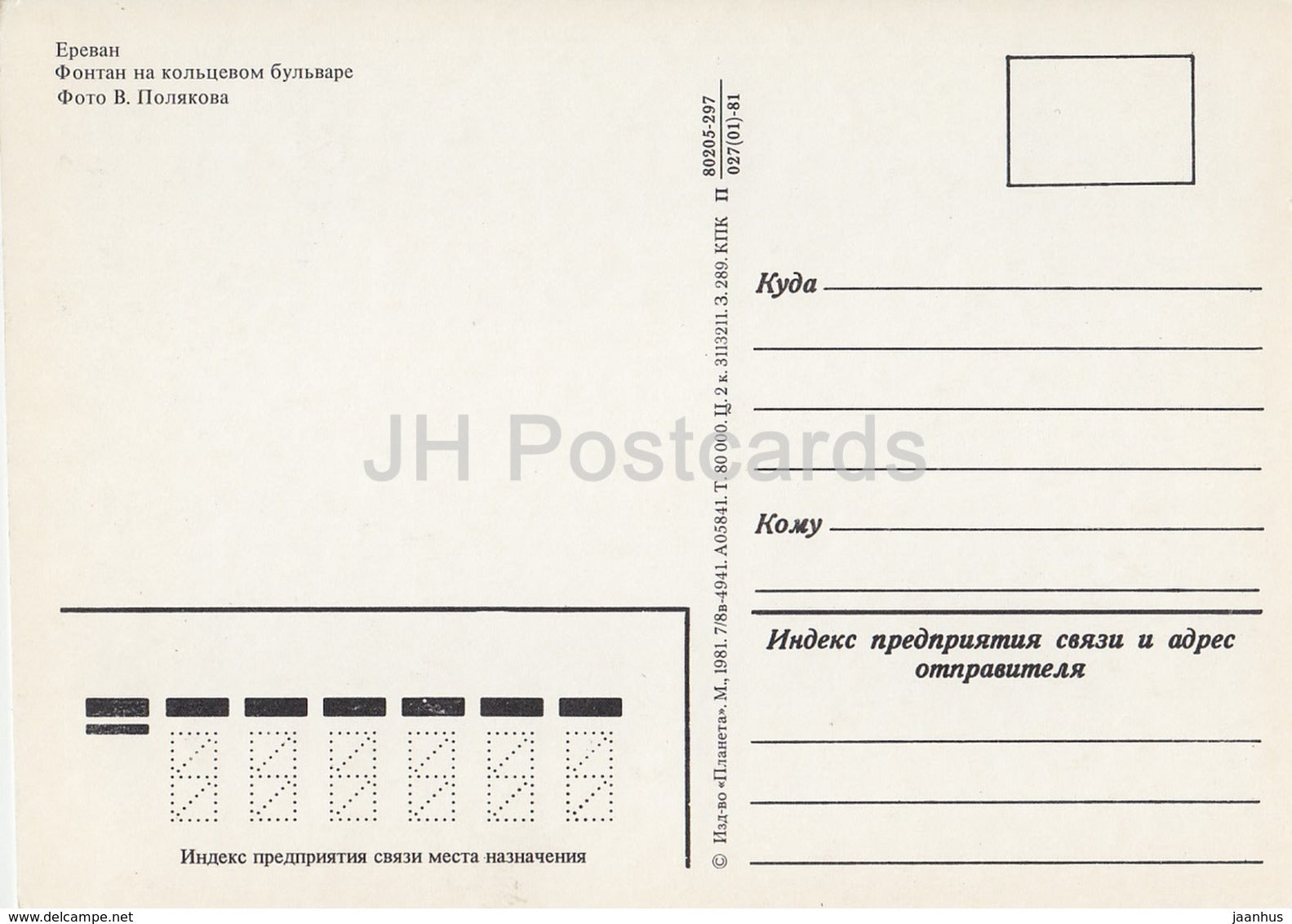 Yerevan - ring boulevard fountain - 1981 - Armenia USSR - unused