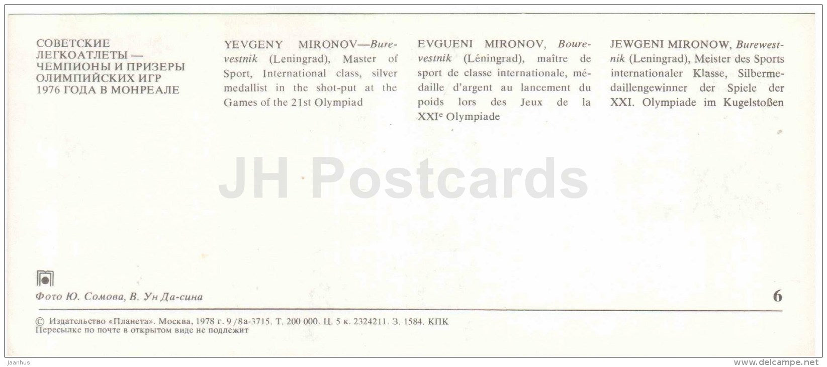 Yevgeny Mironov - Shot Put - Soviet medalists of the Olympic Games in Montreal - 1978 - Russia USSR - unused