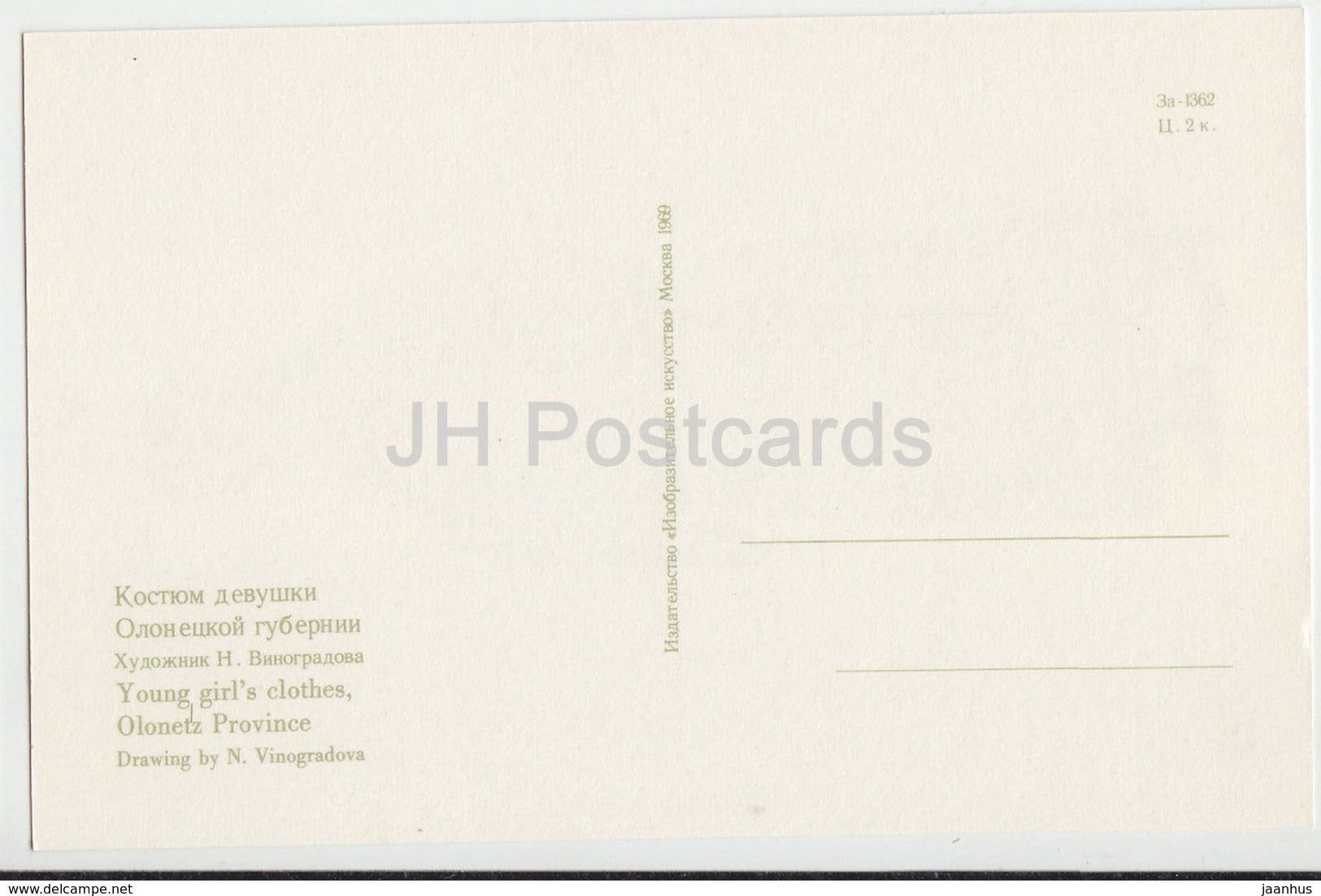 Young Girls Clothes - Olonetz Province - Russian Folk Costumes - 1969 - Russia USSR - unused