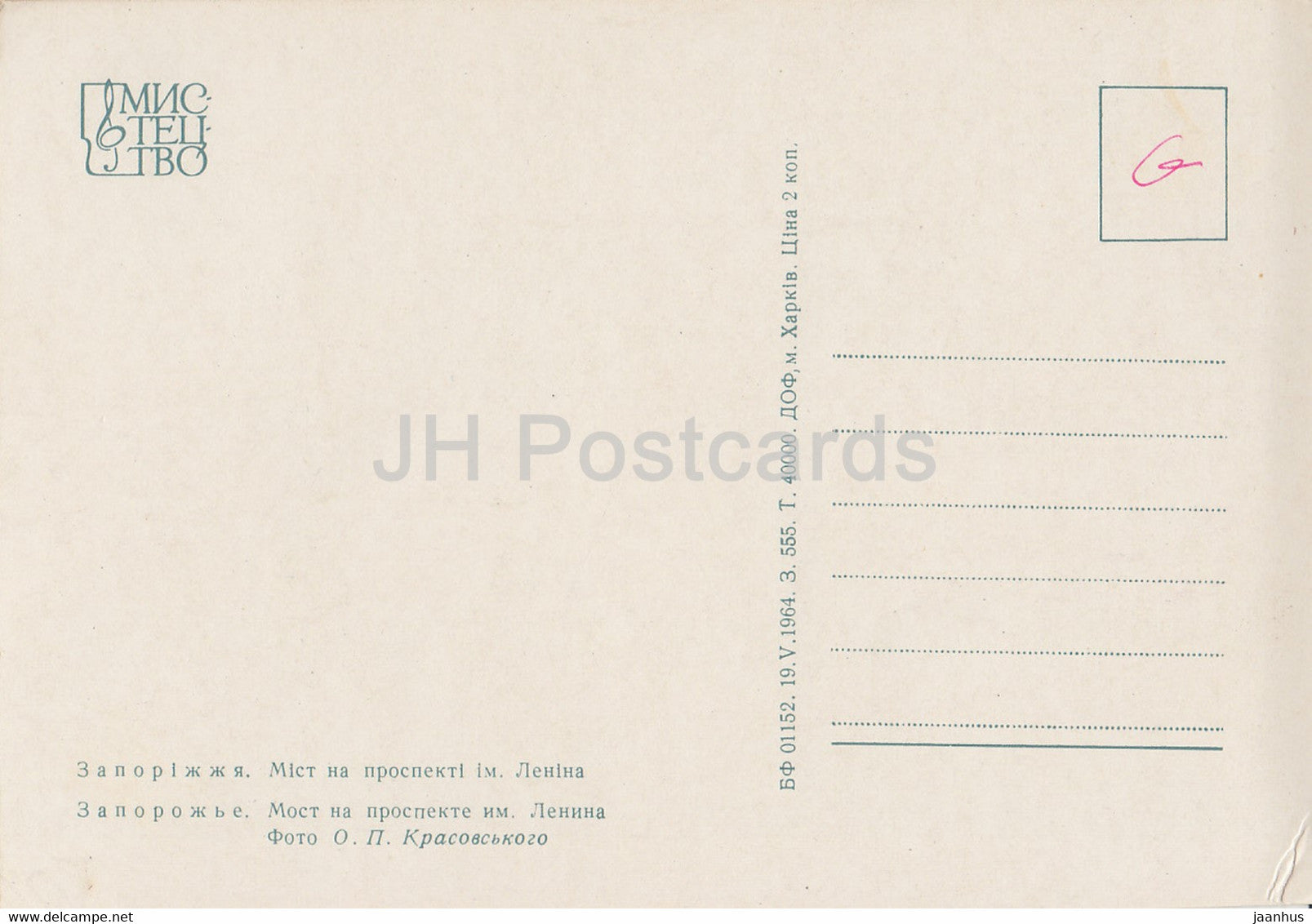 Zaporizhzhia - bridge at the Lenin prospekt - tram - 1964 - Ukraine USSR - unused