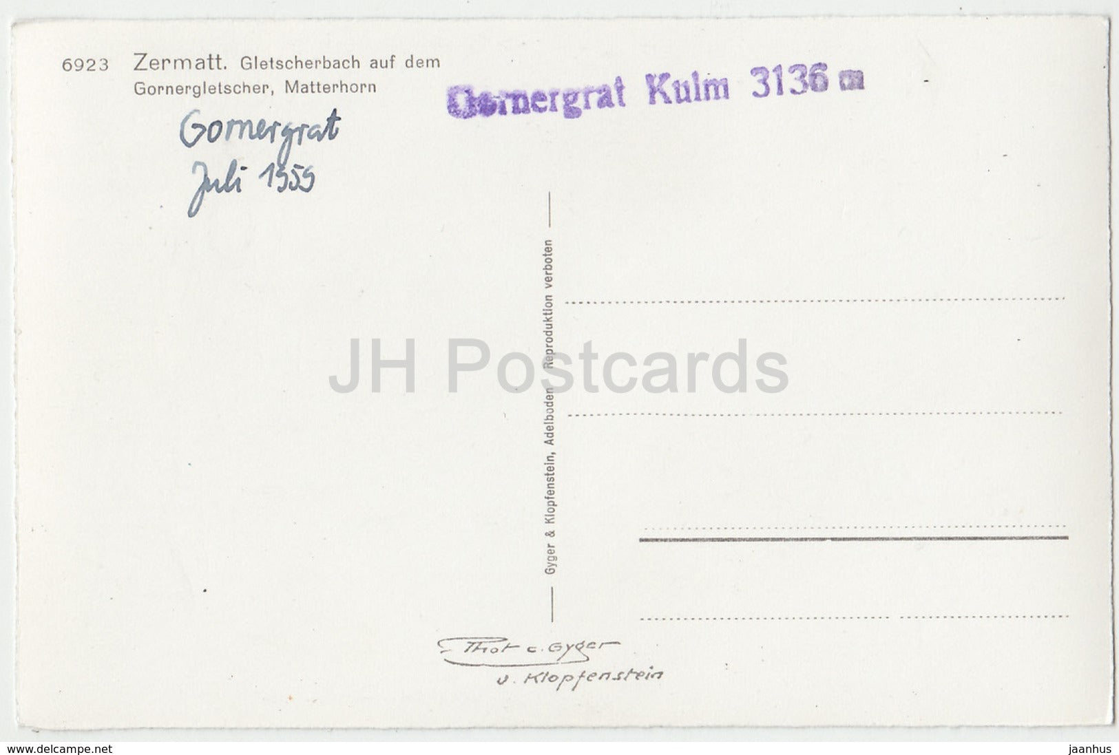 Zermatt - Gletscherbach auf dem Gornergletscher - Matterhorn - 6923 - Switzerland - 1959 - used